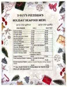 Our menu features a wide variety of pizzas, including classic favorites like pepperoni and cheese, as well as more unique options like our signature 3 Guys Special, loaded with an assortment of meats, veggies, and fresh mozzarella.